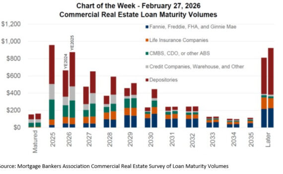 Seventeen percent ($875 billion) of the $5.0 trillion of outstanding commercial mortgages held by lenders and investors is scheduled to mature in 2026, a 9 percent decrease from the $957 billion that was scheduled to mature in 2025. This is according to the Mortgage Bankers Association’s (MBA) 2025 Commercial Real Estate […]