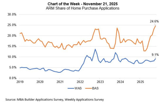 According to data from MBA’s Builder Applications Survey (BAS), 24.6 percent of applications to purchase a newly built home were adjustable rate mortgage (ARM) loan applications in October. Rates for ARM loans have been around 80 basis points lower than the 30-year fixed rate, resulting in significantly lower interest payments for […]