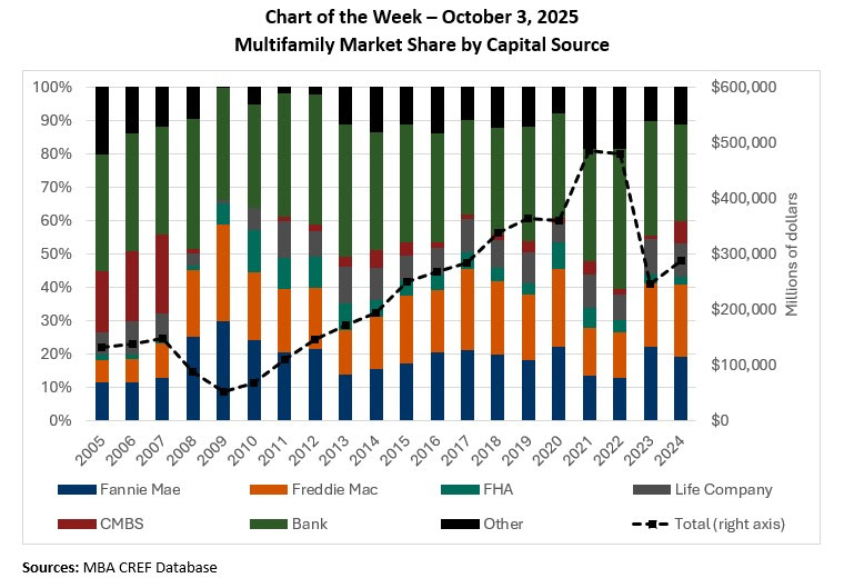 MBA Chart of the Week: Multifamily Market Share by Capital Source (Oct 3, 2025) This Chart of the Week focuses on the distribution of the multifamily market share by capital source. The multifamily market is a fundamental part […]
